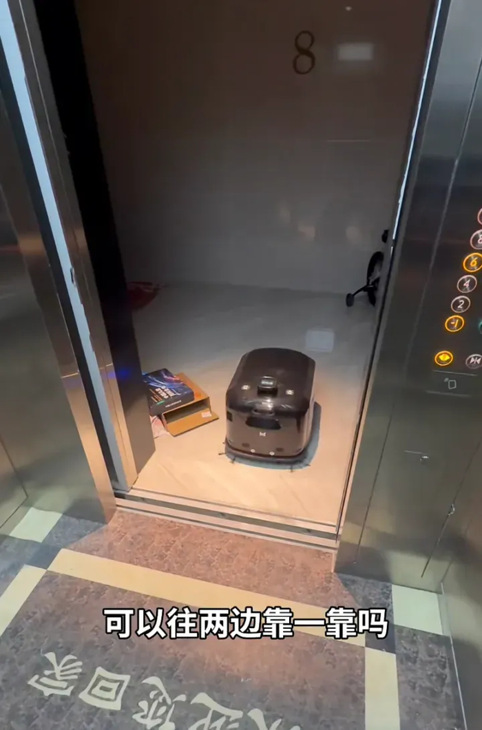 电梯有会自己按楼层的方盒子,室外区域白天能经常见到自动清扫机,室内的公共区域也逐渐由机器人打扫。