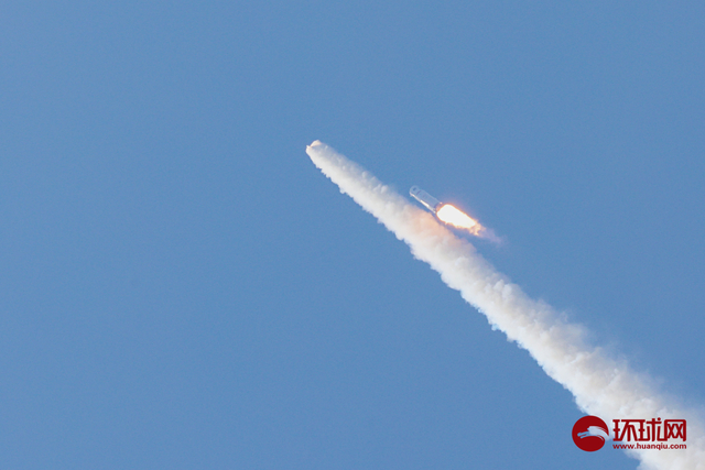 11时00分,地面试验指挥中心下达点火指令,火箭点火升空。拍摄:樊巍