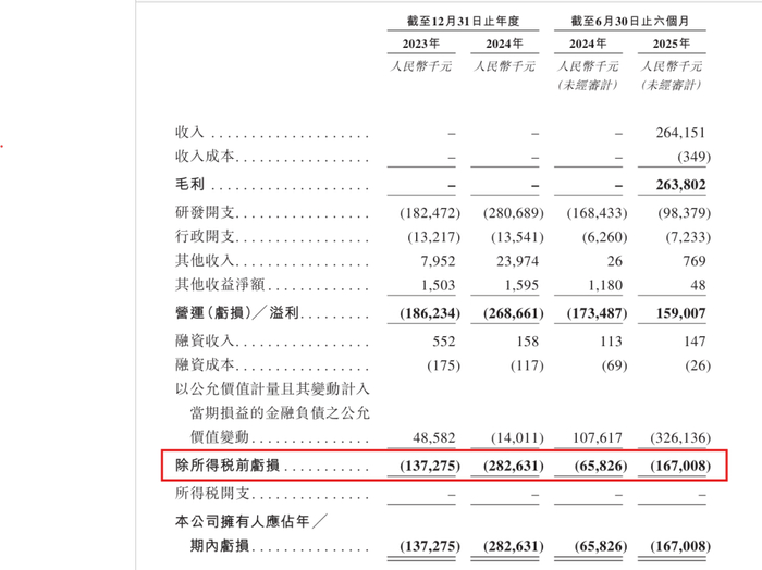 招股书披露的财务数据显示,2023年至2024年公司无营业收入,直至2025年上半年,公司收入约2.64亿元。