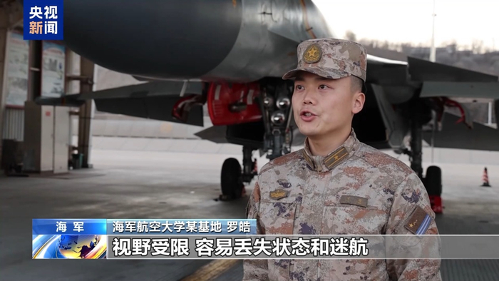 海军航空大学某基地 罗皓:夜间飞行环境比较昏暗,视野受限,容易丢失状态和迷航,飞行员只能通过机载数据链和导航定位系统,判定飞行状态和位置,这不仅考验自身的技战术水平,更考验心理素质。