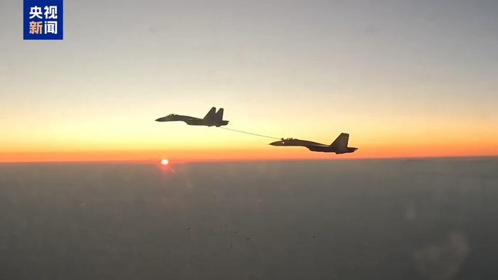 受油探头和加油软管锥套成功实施对接,战机编队开始空中加油。加油结束后,受油机脱离加油区,奔赴另一个空域,开展新一轮战术编队训练。