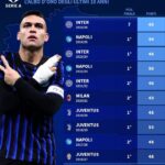 国际米兰在意甲第16轮补赛中凭借皮奥·埃斯波西托的唯一进球1-0战胜莱切,目前以15胜1平4负积46分领先AC米兰和那不勒斯6分,成为本赛季半程冠军。根据过去9年的数据,半程冠军最终有六次获得赛季冠军。