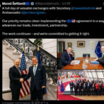 [文/观察者网 齐倩] 当地时间11月24日,欧盟委员会贸易和经济安全委员谢夫乔维奇与美国商务部长卢特尼克、贸…